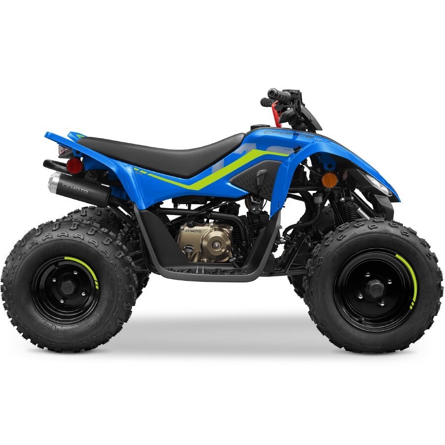 Fuel injected 107cc engine Up to 45 kph 3 speed transmission Magnetic safety tether (kill switch) LED display LED headlights and taillights One-year warranty Chain guard and disc guard CFMOTO Youth App