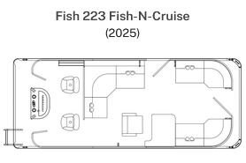 Whether you're planning a day of fishing or a leisurely cruise, the Fish N Cruise has got you covered. With a Cruise front end and “L” section, coupled with two rear fishing seats and bait station aft, this floorplan offers the best of both worlds. There's ample space for fishing, cruising, and relaxation, making it perfect for any occasion. Available in 22' and 24' models.