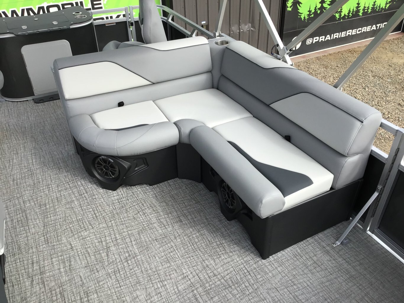 Yamaha Prerig, Venture 85 Platinum Edition, Commander Mid Back Reclining Chair, Mooring Cover, Garmin 52CV, LED Smoked Chrome Docklights, Platinum Edition Special Badging, Leon Graphite Base 1 Vinyl, Leon Silver Base 2 Vinyl, Koolfab Charcoal Accent Vinyl Black, Canvas, Riptide Shadow Flooring, 2 Ft Bow Deck Extension, Charcoal Seat Cladding  And Charcoal Metallic Wall.