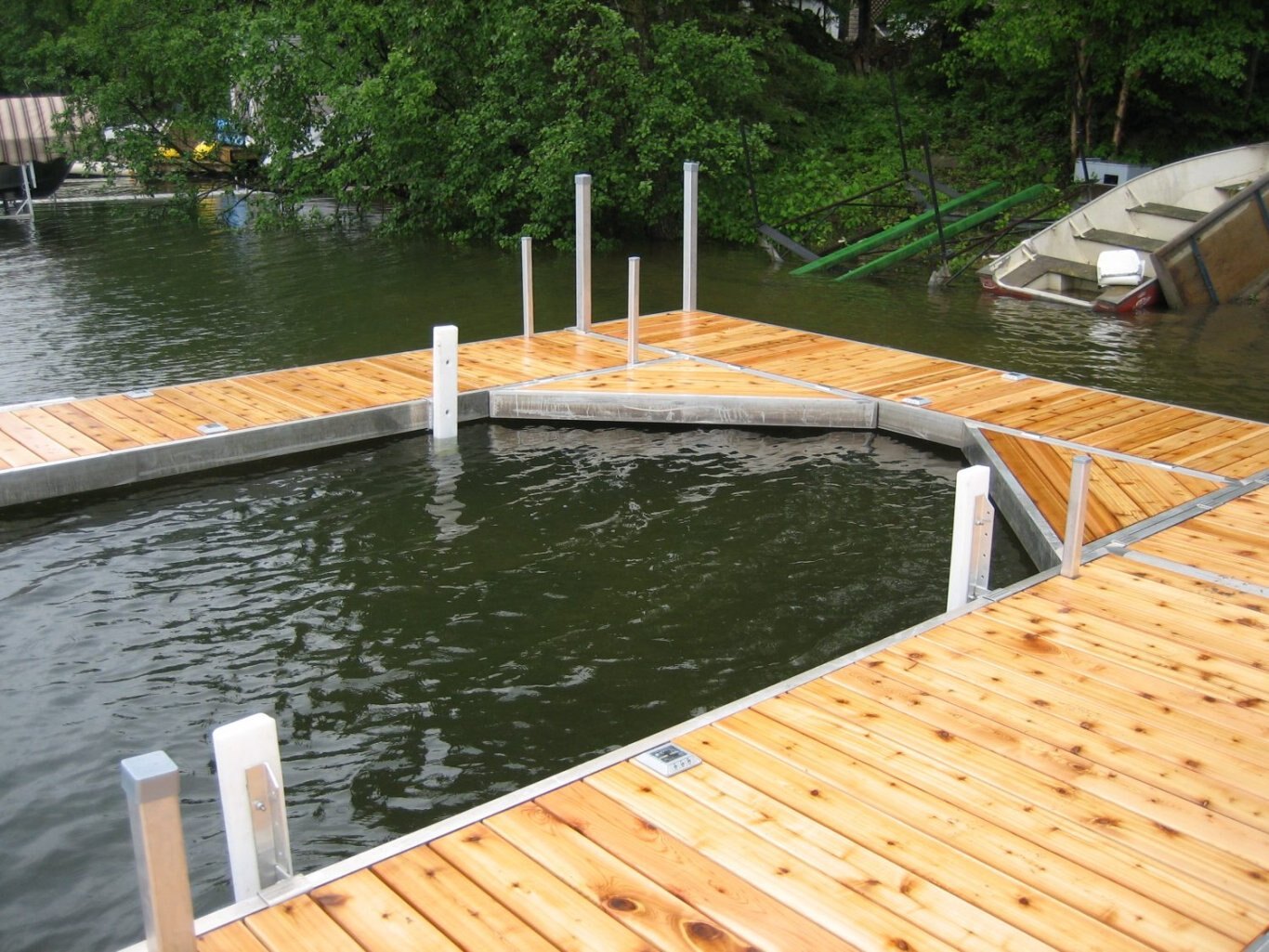 Cedar decking along with welded side rail frame provides an attractive dock system with clean lines.