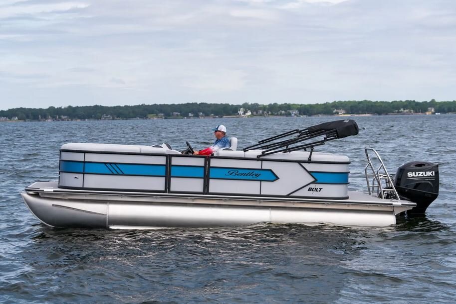 The Bentley Bolt is the perfect pontoon boat for water enthusiasts seeking an affordable and sporty adventure. This brand-new sporty triple toon from Bentley delivers an unexpectedly exhilarating ride on the water, with a top in the mid 40’s mph. The triple toon model provides enhanced maneuverability, due to the added lifting strakes which also ensures a smooth and controlled experience even at high speeds.